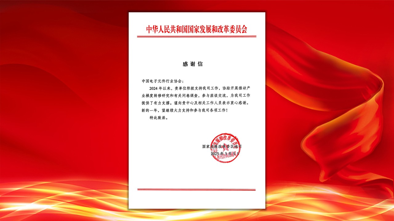 中国电子元件行业协会收到国家发展改革委区域司发来的感谢信
