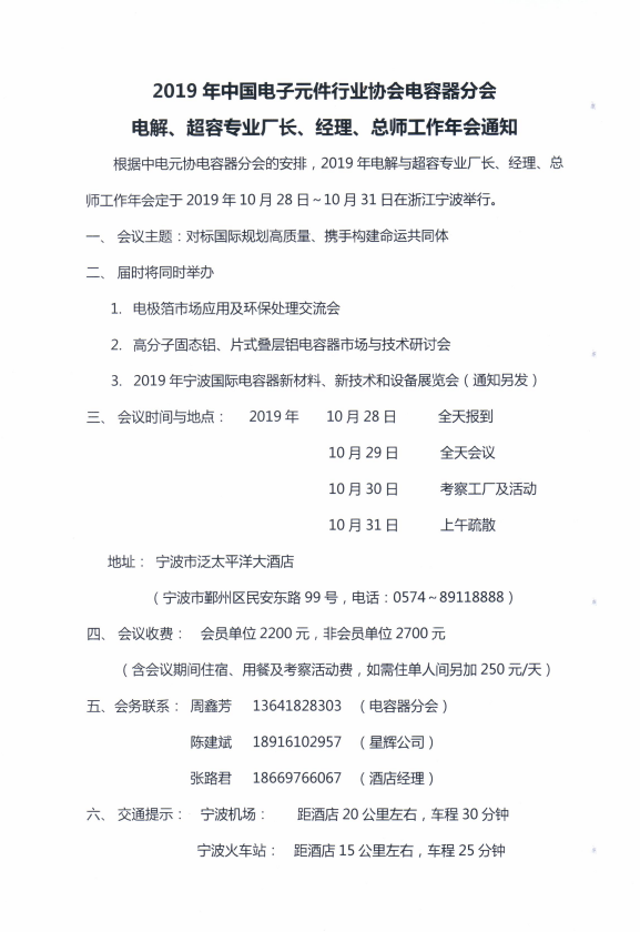 2019中国电子元件行业协会电容器分会电解、超容专业年会