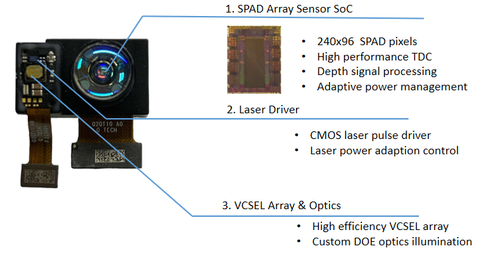 VI4331通过片上集成电源管理模块、高性能TDC、高速DSP运算模块,可实现23K点的深度点云信息。