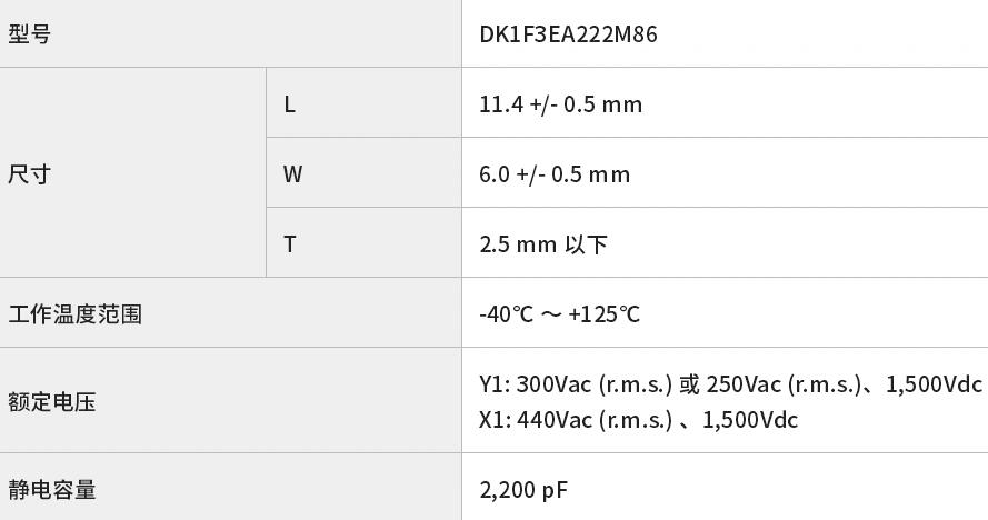 本次在Y1级安全规格认证陶瓷电容器系列中新增拥有该系列最大静电容量2,200pF的本产品,有望进一步推动产品的小型化和轻薄化。