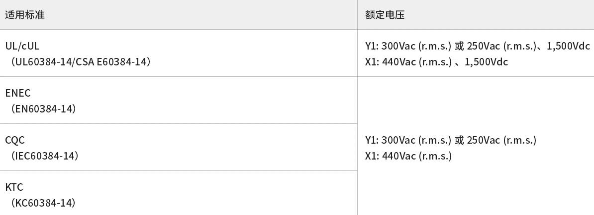 (1) IEC 60384-14:从防止漏电引起的火灾及触电的角度出发,对连接到商用电源的电容器的耐电压性能和阻燃性能规定的国际标准。