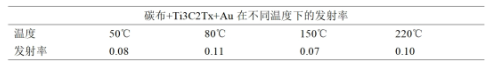 电磁屏蔽,就是降低电磁波的透过率,通过大量的反射和吸收来降低透过率是常用的科学策略。因为Ti3C2Tx内部是层状结构,内部具有层间距,这样当微波打入到Ti3C2Tx材料时,能够被大量吸收且内部多次反射,实现信号的大量衰减。此外,根据红外隐身工作的结果,在Ti3C2Tx最外层加上一层金,金能够很好地反射微波,也能够很好地提高电磁屏蔽性能。根据这样的一个工作机理,结合上面的红外工作机理,Ti3C2Tx复合碳布这类的复合柔性材料,能够同时兼容红外隐身和电磁屏蔽性能,且具有柔韧性,对于军事领域等具有很大的贡献,有一定的可行性。在实现红外隐身的过程中,考虑到更低的发射率,采用在最外层镀一层薄薄的金膜。