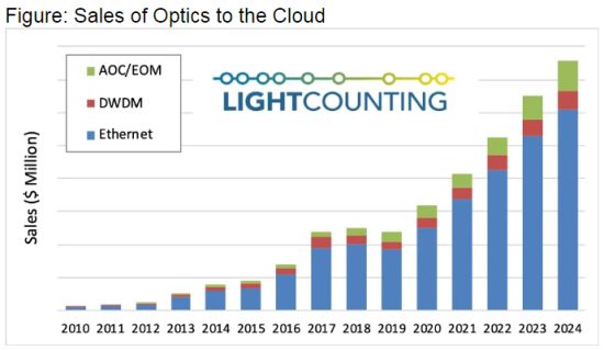 云公司在大型数据中心和网络基础设施方面的投资为光器件和模块市场创造了一个新的且非常活跃的板块。