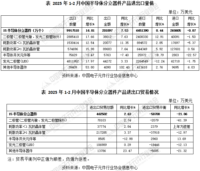 2025年1-2月半导体分立器件大类产品进出口详情
